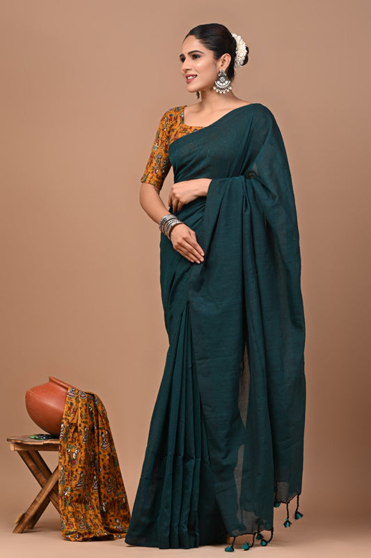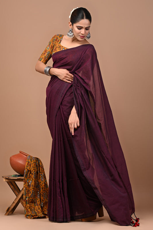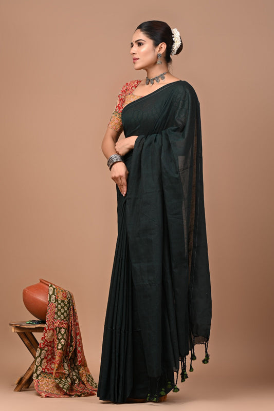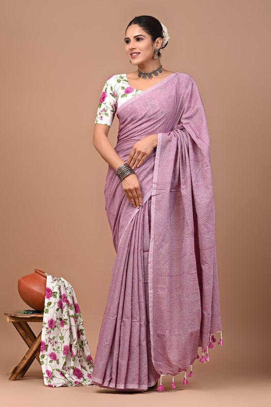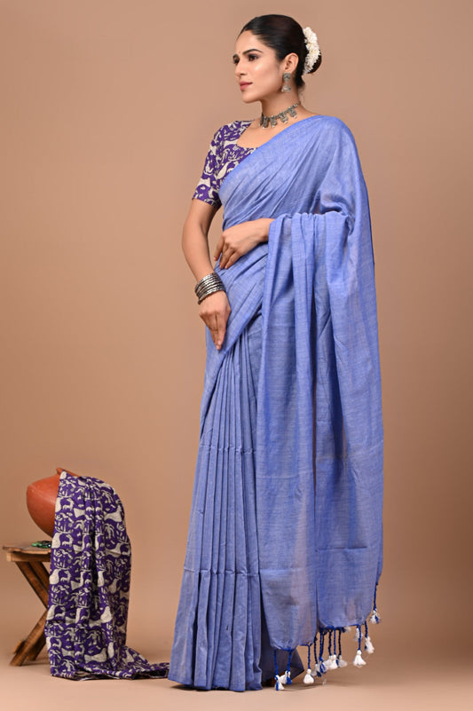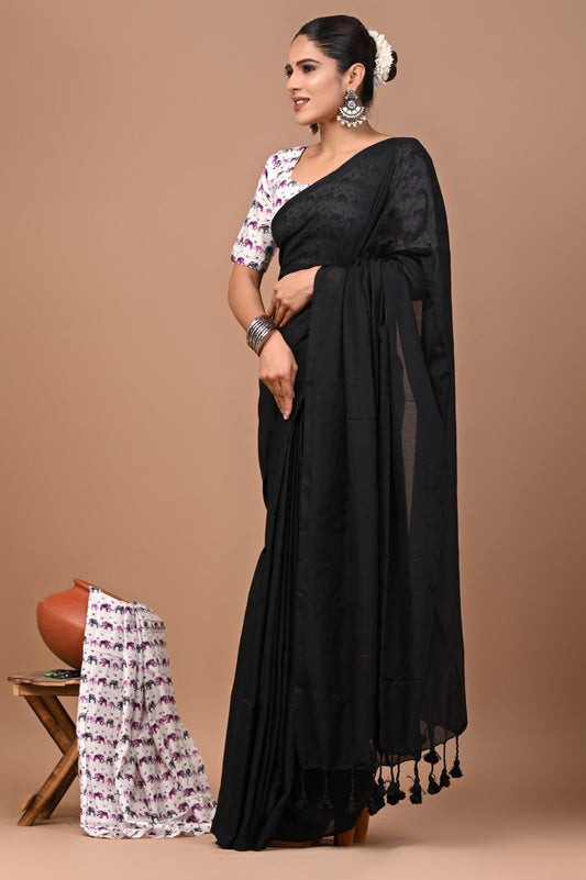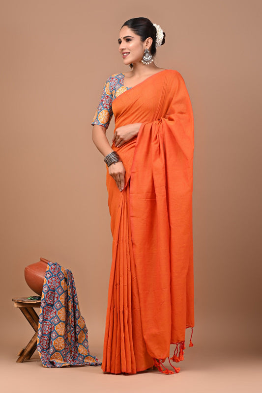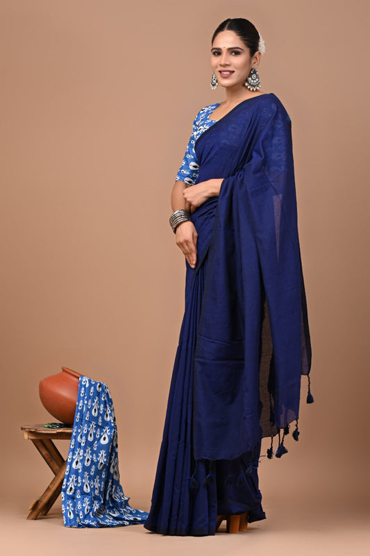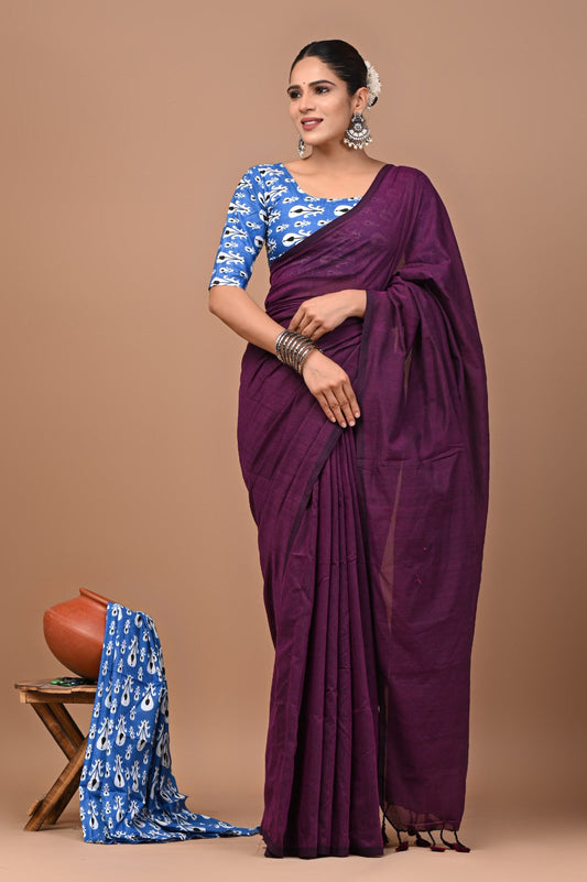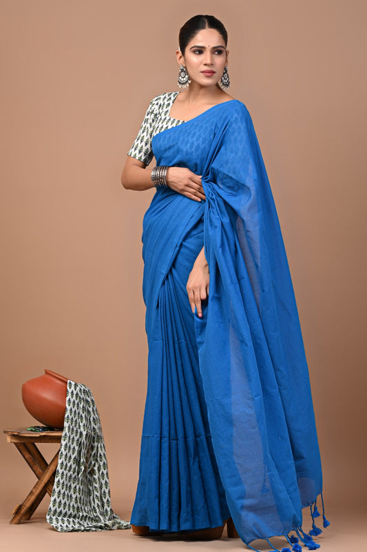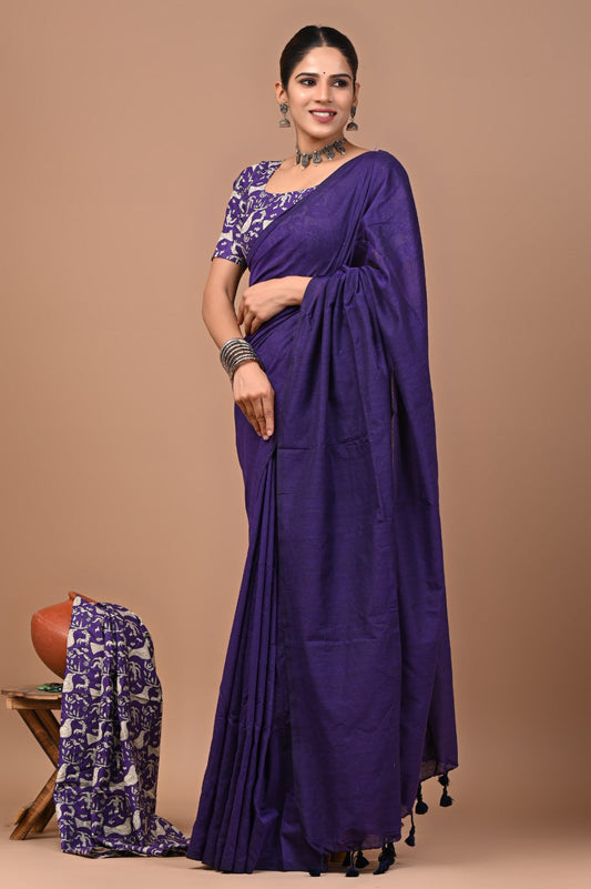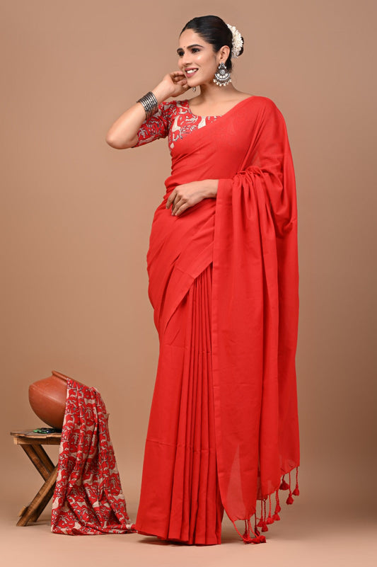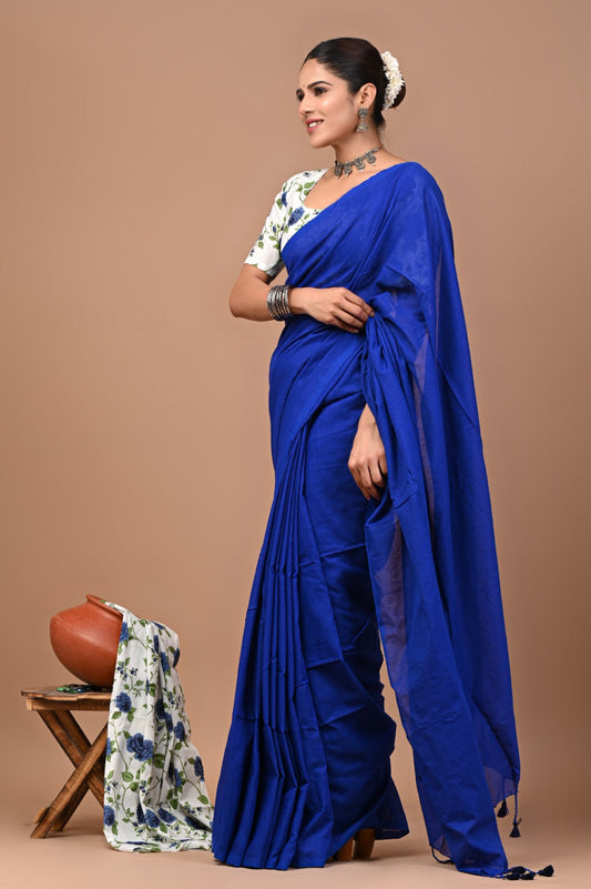 Rajasthan Fabric Printed Pure Cotton Mulmul Saree With Blouse