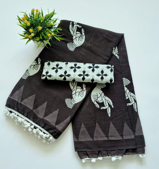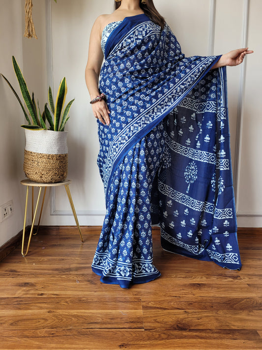 Jaipuri Printed Pure Cotton Mulmul Saree With Blouse