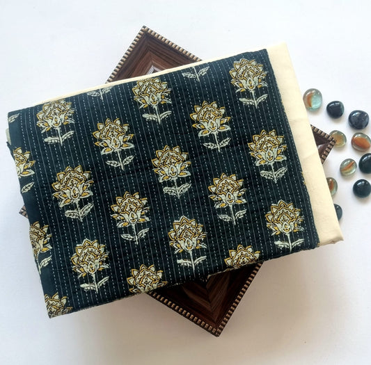 Pure Cotton Kantha Work Kurta Fabric (2.5 Meters) | and Plain Dyed Cotton Pyjama (2.5 Meters) | Unstitched Combo Set
