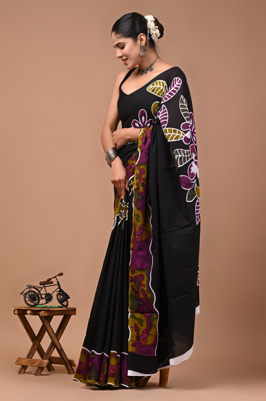 Printed Pure Cotton Mulmul Saree With Blouse