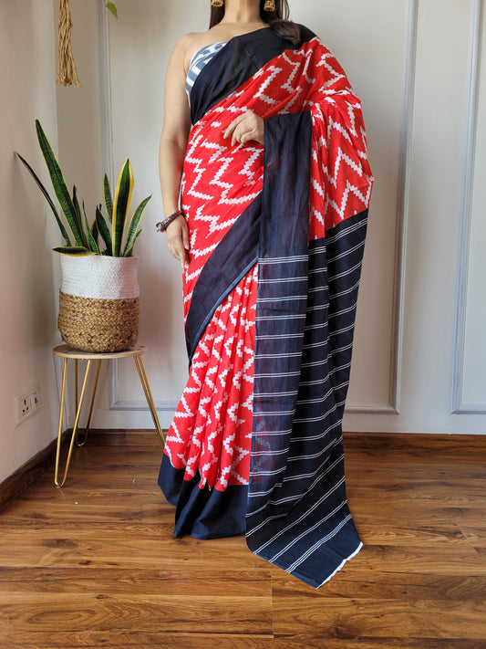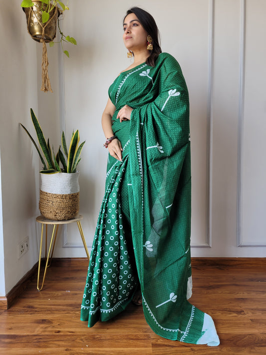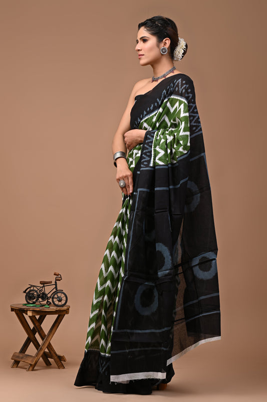 Printed Pure Cotton Mulmul Saree With Blouse