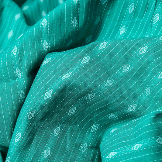 Turquoise Pure Cotton Kantha Work Kurta Fabric (2.5 Meters) | and Plain Dyed Cotton Pyjama (2.5 Meters) | Unstitched Combo Set