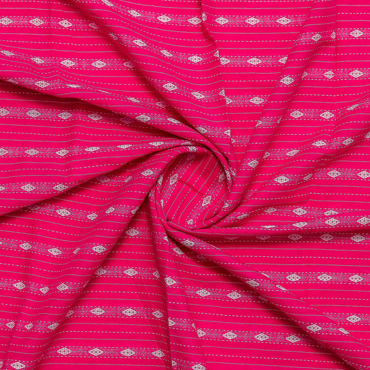 Hot Pink Pure Cotton Kantha Work Kurta Fabric (2.5 Meters) | and Plain Dyed Cotton Pyjama (2.5 Meters) | Unstitched Combo Set