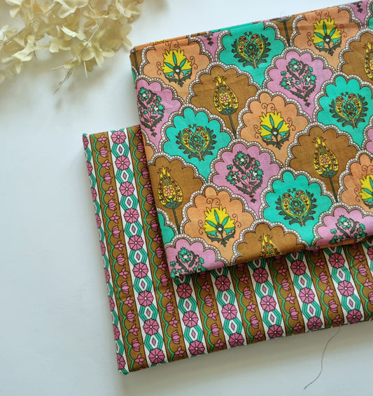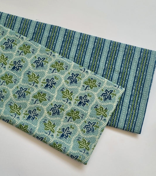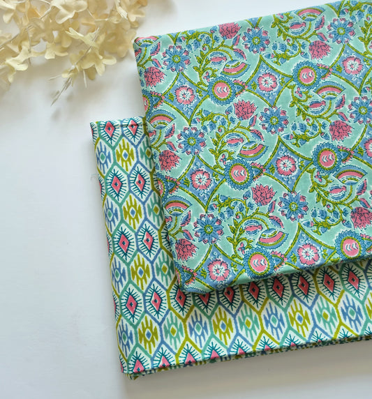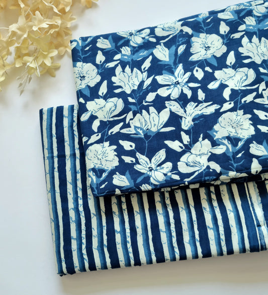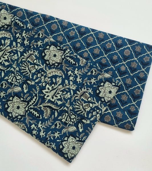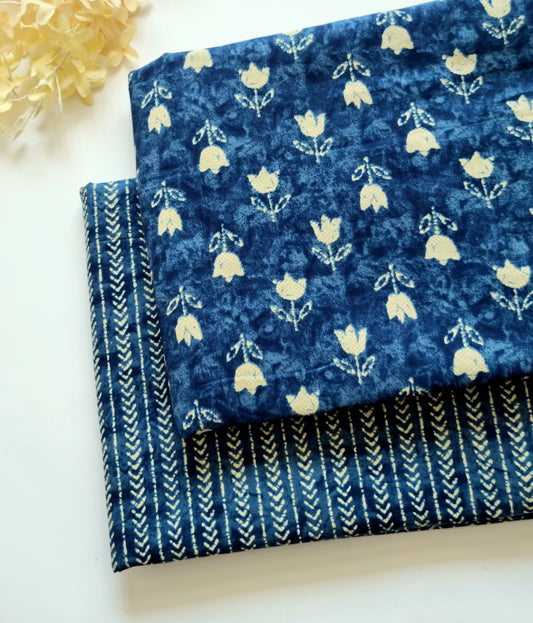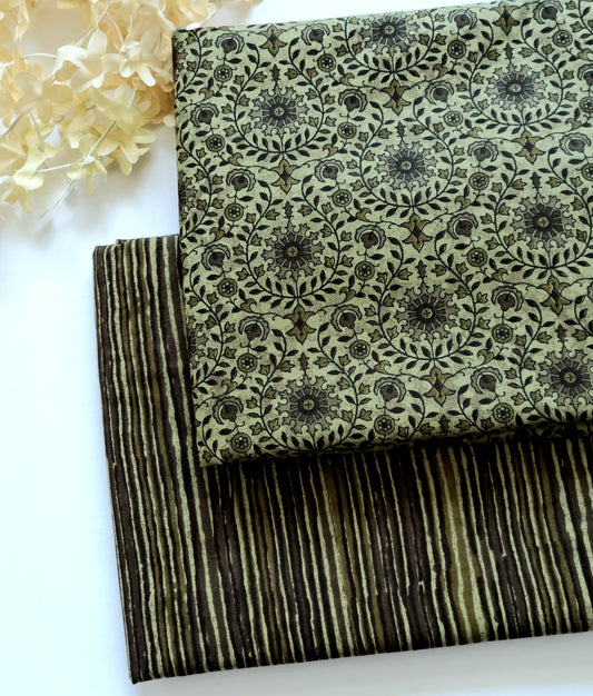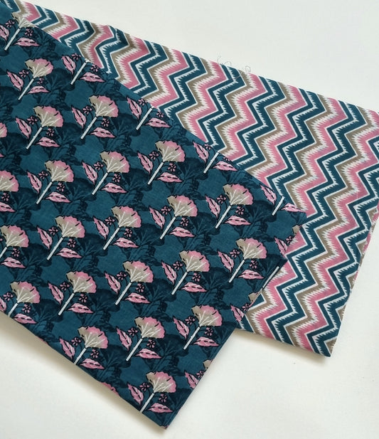 Printed Pure Cotton Kurta Fabric (2.5 Meters) | and Printed Cotton Pyjama (2.5 Meters) | Unstitched Combo Set