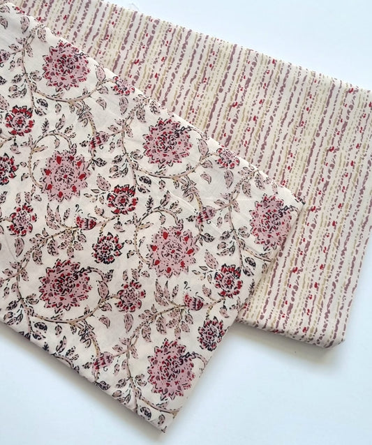 Printed Pure Cotton Kurta Fabric (2.5 Meters) | and Printed Cotton Pyjama (2.5 Meters) | Unstitched Combo Set