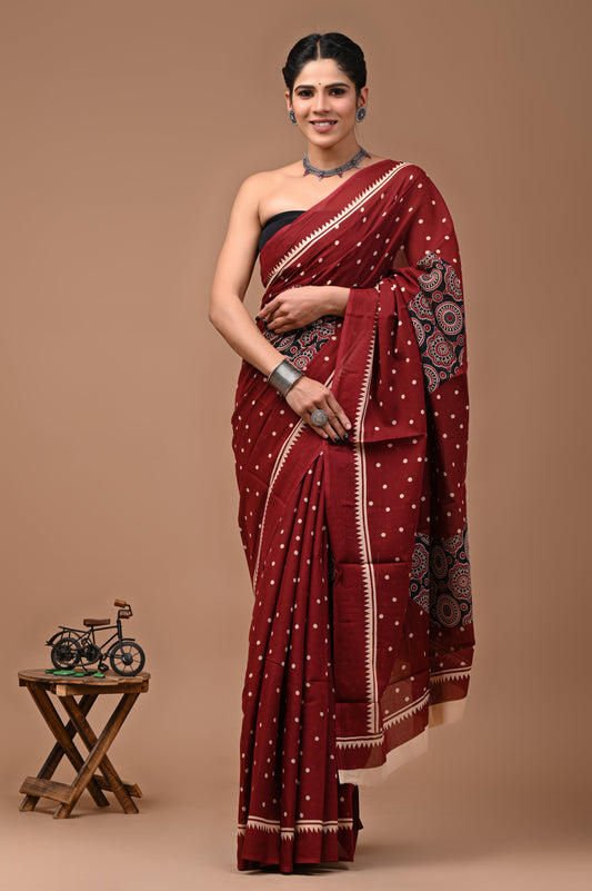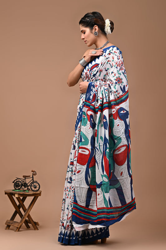 Jaipuri Printed Pure Cotton Mulmul Saree With Blouse