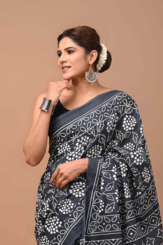 Printed Pure Cotton Mulmul Saree With Blouse